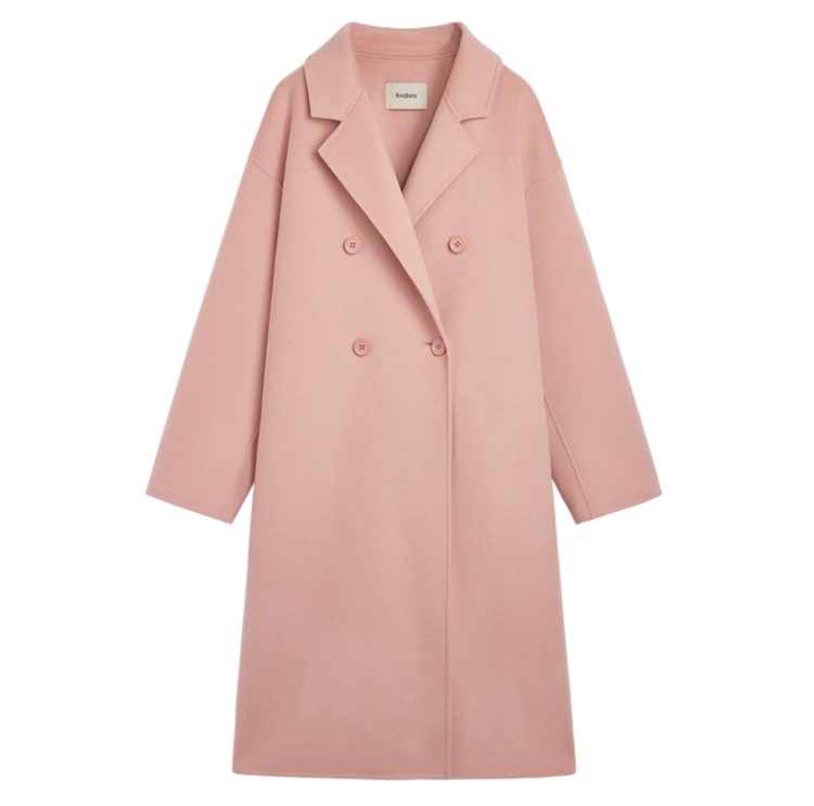 双面大衣质感柔软,采用纯手工的缝制方法制作,是将两块面料重叠缝制,运用空气隔热的科学原理提高保暖性,最大的特点就是轻盈又保暖。羊毛手感顺滑,相较于其他皮毛来说,羊毛的纤维柔软、弹性十足,保暖性也非常好。