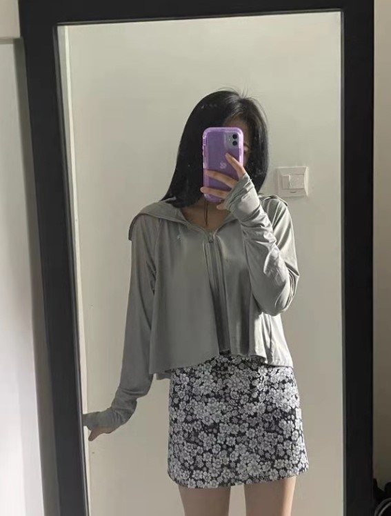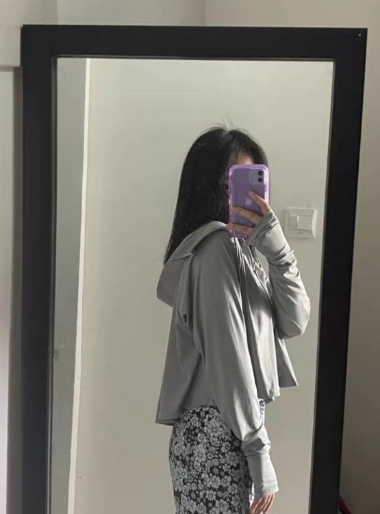 朋友说看起来很可爱,像个小兔子。今年过敏了两次,不太想涂防晒,所以想全副武装把自己包起来。期待防晒效果,有一个小问题就是马尾如果扎高一点的话,帽子带起来会顶着,会把衣服拽上来。