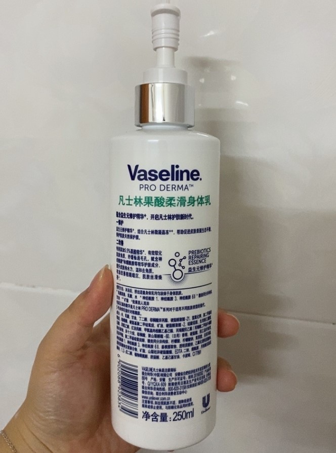 凡士林5号果酸身体乳是我看到一个美妆博主推荐安利我才购买的,我之前使用的身体乳的香精味道都太过于浓了,所以就想着买一款质量比较好的身体乳使用。