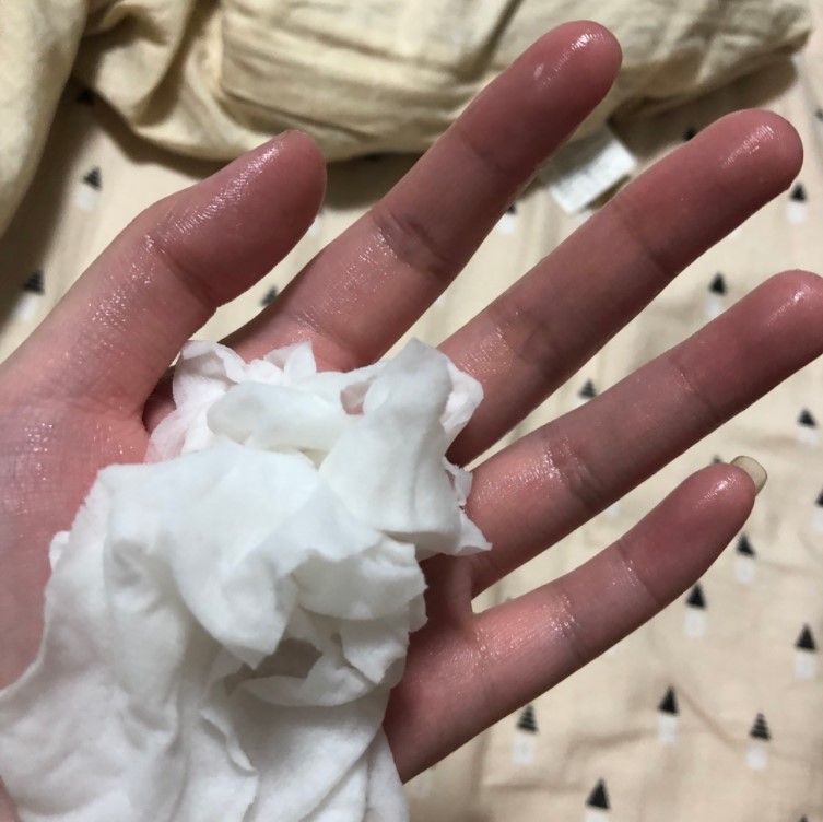先是隔着面膜袋子摸,里边是超级柔软的感觉。面膜纸薄厚适中,柔软又服帖,精华液超级多,面膜纸拿出来,袋子里都还有很多,质地比较稀,有一些流动性。上脸超级舒服,很清爽,还伴随着淡淡的花香味道。