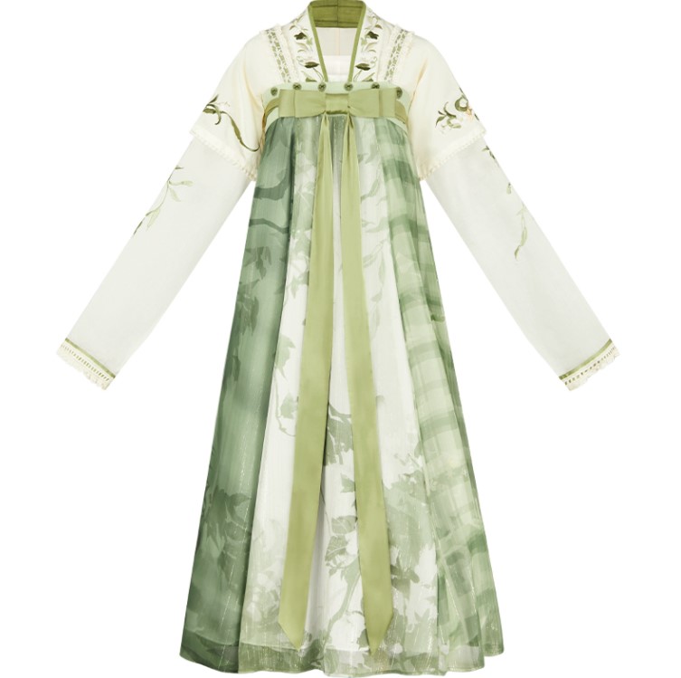 其中襦裙是最为基本也是历史最悠久的款式,在经过改良和发展后,我们现在所经常看见的有齐腰襦裙、高腰襦裙、齐胸襦裙三种。
