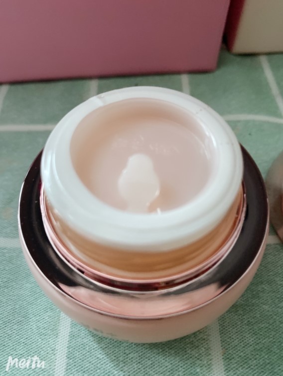包装粉粉的很漂亮,淡淡的香味很好闻,质地是凝露状的,很舒服,轻松抹开,关键是不油腻!