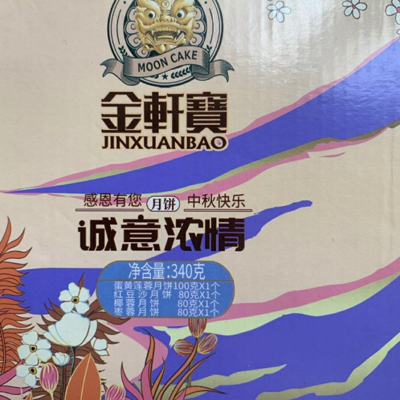 总结:金轩宝中秋月饼整体的外包装很精致,买来在过节的适合送给朋友亲戚都是很不错的,莲蓉很软很香,而且不腻,很新鲜性价比高。