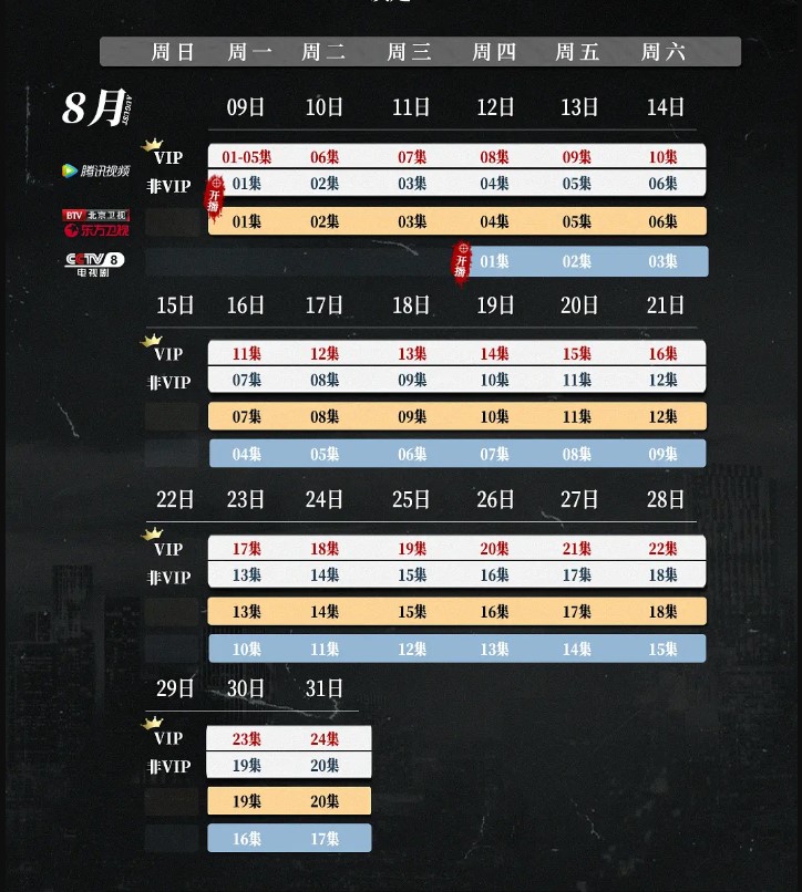 该剧于2026年8月9日在东方卫视、北京卫视播出,并在腾讯视频同步播出。