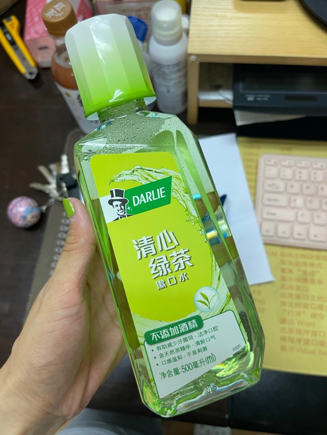 个人感觉绿茶味的使用感最好,口感真的不辣!甜甜的,刷完牙,正好倒到盖子里一杯漱一口,清新一夜。口气确实有所好转,常常漱口后戴口罩出门简直清新至极。