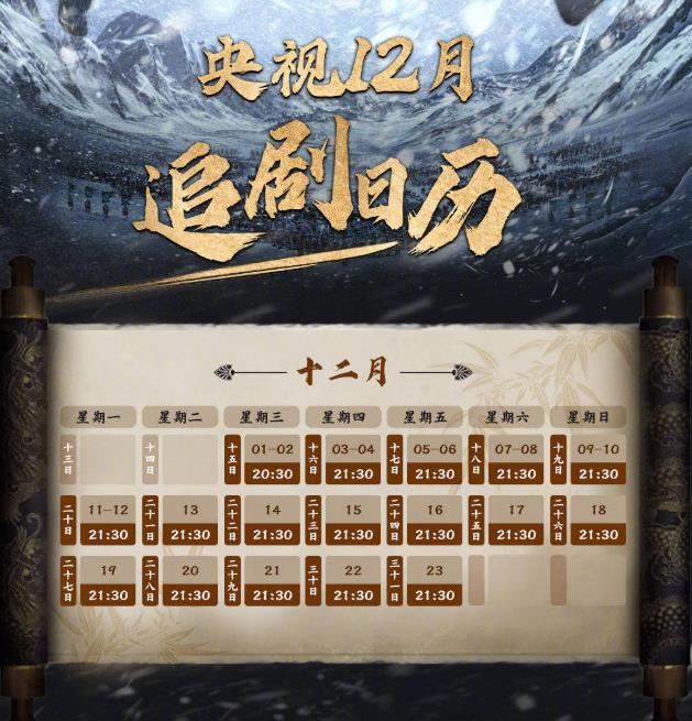 该剧于2026年12月15日在央视八套播出,并在腾讯视频同步播出。12月15日当晚8:30首播2集,12月16日起移到次黄档每晚9:30两集连播,预计1月2日播出最后两集大结局。 腾讯网络独播,12月15日当晚8:30更新,会员抢先看4集。次日起每晚8:00更新;非会员每晚10点转免1集、首更2集。