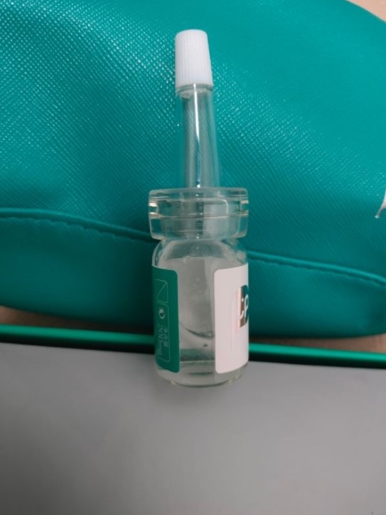 包装很严密精致,是两个小小玻璃瓶,但是用技巧来打开很方便。有详细的使用流程,手残党也能用。这是混合后的液体的状态,看着是液体,也挺有粘稠度的。
