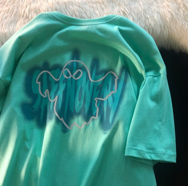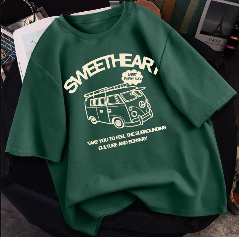 这款是刚刚好宽松设计的一款绿色t恤,对于小个子女生来说还是可以轻松驾驭的,而且绿色t恤又是短款的设计,所以穿上的女生都可以突显高腰线的,搭配波点裤子,裤子是灯笼裤的设计,就像是复古又流行的奶奶时代的裤子那样,绑带的设计可以随意调整裤口的设计,搭配起来就很好看,还显瘦。