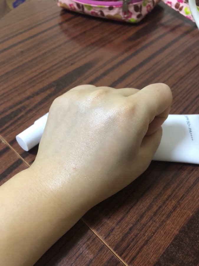 我的皮肤很干。这个穿上后有保湿效果。虽然不知道怎么防晒,但是确实美白了一点,然后很自然的就把肤色提亮了。