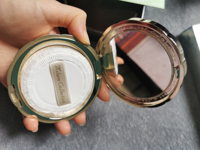 外包装就很有欧洲宫廷风的那种感觉,里面的雕花也很好看,它的整体形状也不大,平时带出门补妆还是很方便的。