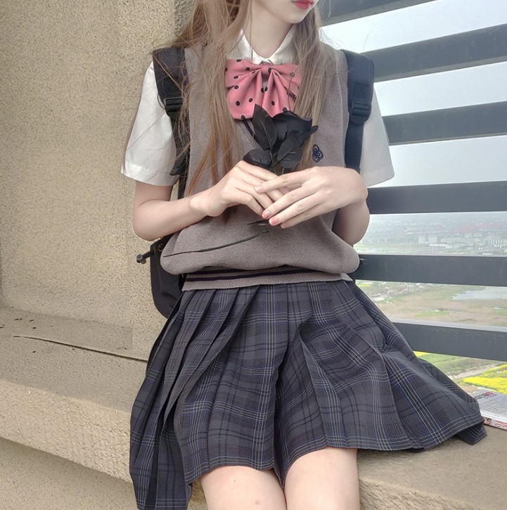 霓虹妹子她们外面一般会穿一件呢子的长外套,这玩意儿真的扛风还扛冷!还有帽子款制服里面是穿的毛衣开衫儿或者毛背心儿,有针织的,羊绒的,这玩意儿老暖和了,穿的我背心都是汗。再然后里面儿穿白衬衫儿加个领结,衬衫里穿不穿秋衣我就不知道了,反正我不穿。然后格子裙加袜子,还是冷就贴上暖宝宝和围巾手套等保暖物品。霓虹妹子很多都是优衣库+制服+西装外套或者毛绒外套+袜子+围巾,穿短袜或者不穿袜子的也不少。
