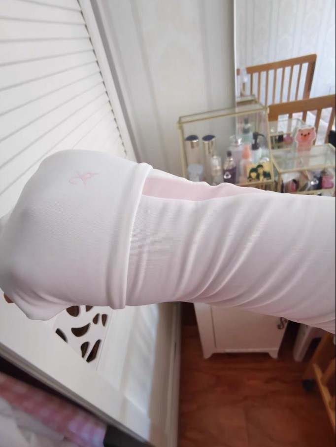 袖口都做了防脱落不会往下滑!尺码合适室外都能用,推荐冰袖材质很薄,不会闷热,弹力也很大使用感很不错,面料是冰丝,着特别舒服,夏天戴着,应该不会热的那种料子,很不错。