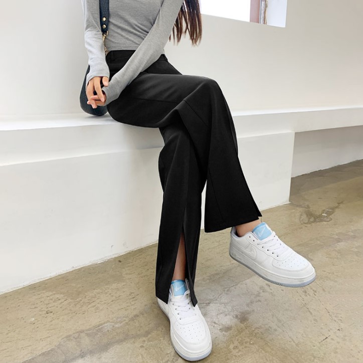重点是:大家可以卷起裤管,露出脚踝,可以打破全身深色的沉闷感,而且也会更加时尚。还可以拉长双腿,瞬间成为长腿。