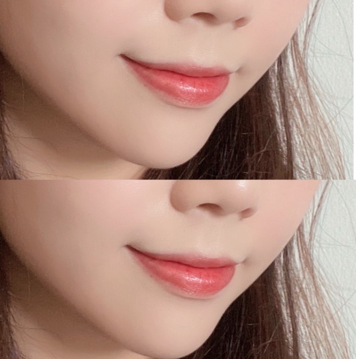 质感是偏向于哑光雾感的,就算是厚涂也不会拔干,薄涂厚涂妆面多变,试了一下 果然是非常少女的颜色,挺上镜的,日常淡妆也可以画色调百搭显白。