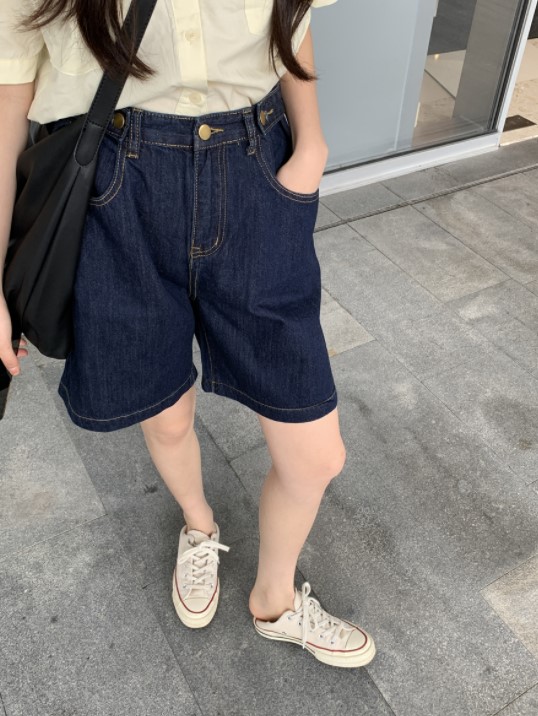 短裤和高帮鞋配一起,容易凸显小腿的,反而低帮的鞋子会显得腿细一点。牛仔短裤配低帮小白鞋,低帮刚好露出骨感的脚踝,看上去会显得骨感一点,当然啦,脚踝也粗的话,可以穿双袜子修饰一下。