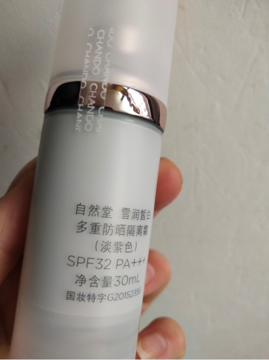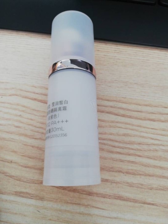 这款自然堂雪润防晒隔离霜妆前乳的包装比较自然,封条比较不明显的在瓶身上,瓶子是磨砂的塑料材质,相对于这个非常实惠的价格来说也可以接受啦。