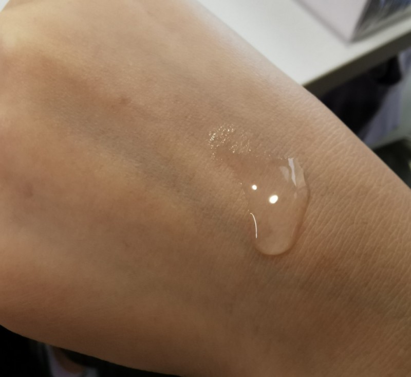倒出来在手上非常透明澄亮,我的手放在桌子上不动,它自动就会顺着边缘向下滑,流动性十分的强,用手轻轻的推开一下自己被吸收了!可见它的补水能力也不容小觑!