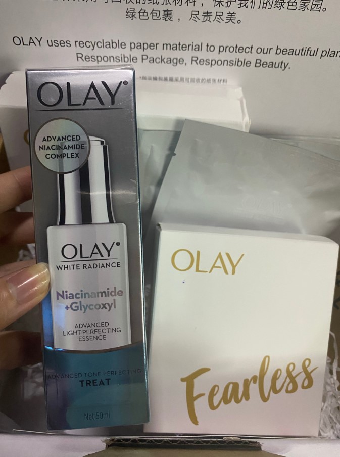 主要是看到小红书上推荐的,我的肤色本来就不算特别的白也有点痘痘,所以就去搜索了一下有什么护肤品可以美白祛痘,就看到了这款olay的小白瓶,很不错的包装看到评价也不错就购入被种草了。