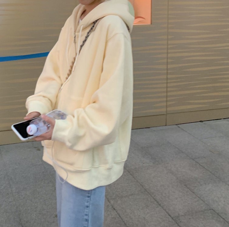 •3、黄色卫衣+牛仔外套:黄色卫衣搭配牛仔外套是比较清新的一种装扮,也是普遍人都会选择的一种搭配形式,也有一定的减龄效果。