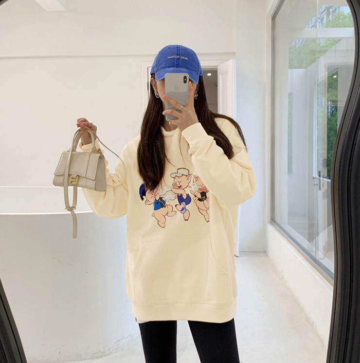 可以单穿,也可以里面搭一件长款衬衫或T恤,内搭的长度要超过卫衣的长度,露出一定的距离会显得整身搭配更有层次感,更有活力。这种搭配会比较考验个人时尚感的把握,在不知道怎么搭的情况下,白tee是最不会出错的内搭款。