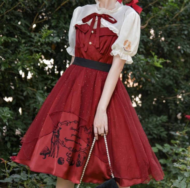 红裙子与黑色上衣搭配是一种非常百搭的配色风格,无论是哪种红色,与黑色上衣搭配,都可以很好的中和红色裙子,让裙子从视觉上不再那么显眼,也能起到降低花哨的作用,这就是很多穿红裙子的女生多数选择黑色上衣的缘故,因为红色与黑色太般配了。可选的上衣也蛮多,比如T恤、雪纺衫、打底衫、衬衫,都可以搭配。