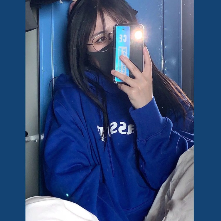第二款蓝色卫衣是比较偏学院风的感觉,我们搭配了一条同样是蓝色的侧条纹运动裤,整套就是给人很学院风的感觉,满满的青春少女感,而且这套衣服都是比较宽松的版型,因此对于身材没有那么好的妹子们来说也更加的友好一些。