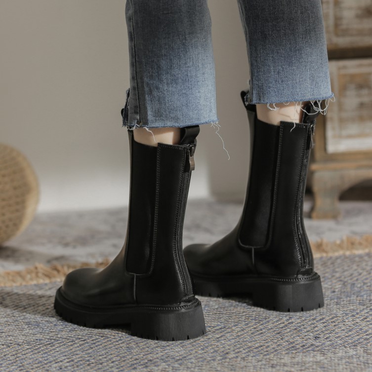 靴子建议可以买大一个尺码,因为在冬天的时候袜子都会穿着的比较厚一些,所以尺码买大一点就不会变得十分之挤脚,其实靴子的尺码跟平时穿的鞋子的尺码是差不多的。