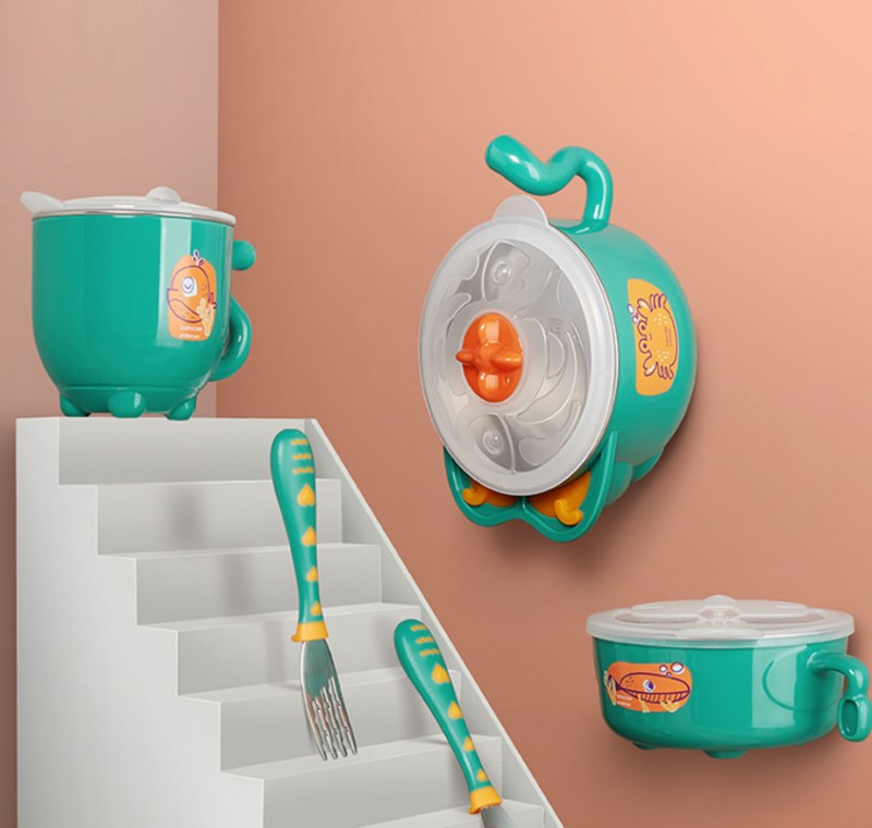 整个碗体运用了卡通造型,搭配柔和的颜色。更加吸引小朋友的注意力,而爱上吃饭。