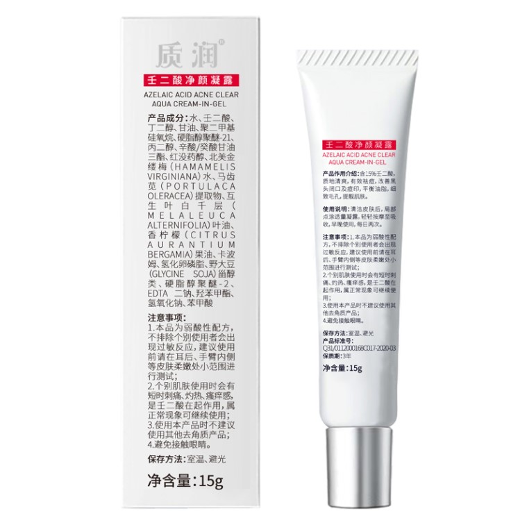 以往使用中感觉到壬二酸的刺激性,主要是因为壬二酸纯度不高(一般为90%)和未调PH值。壬二酸微溶于水,PH值约为3.6,对于祛痘而言,因有皮肤创伤存在一定的刺痛感,最好调PH值至5.5左右;对于祛斑,弱酸性引起轻微角质松脱有利于有效成份的吸收,PH值可采用4.5左右。