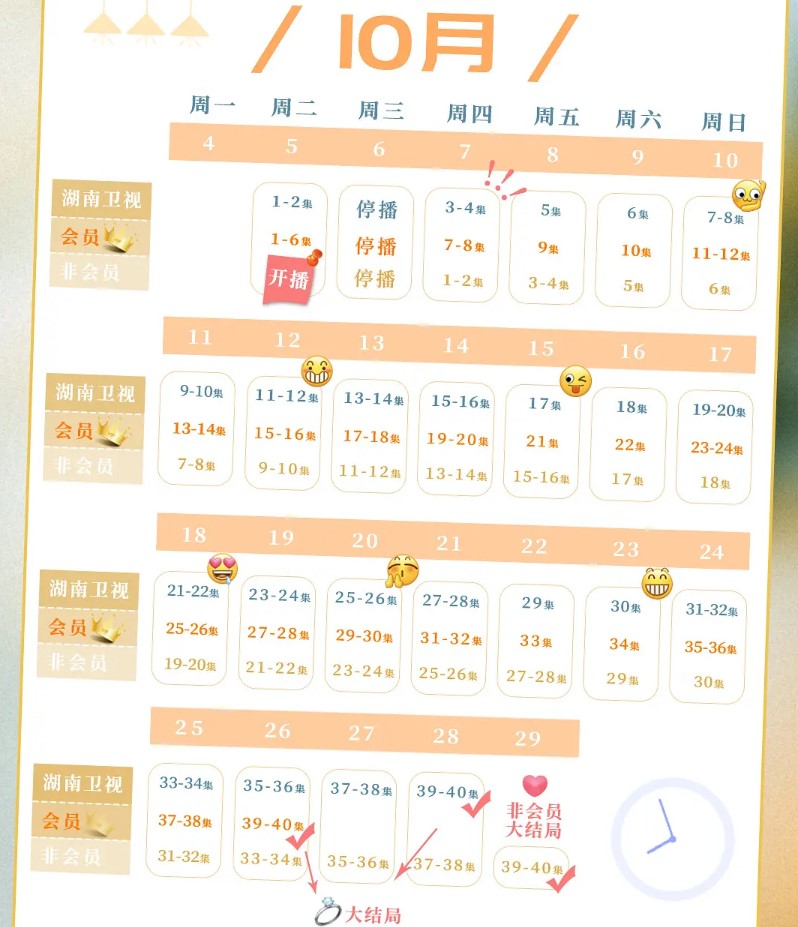 该剧于2026年10月5日在湖南卫视播出,并在芒果TV同步播出。