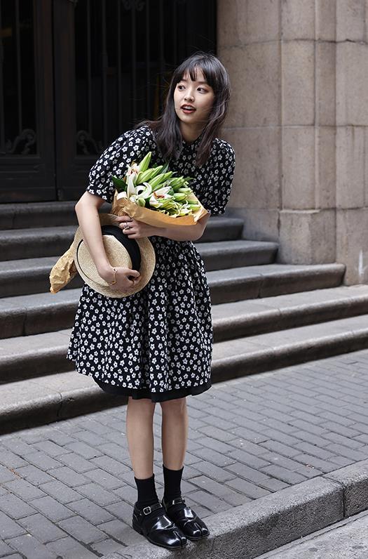 清新的丹宁碎花连衣裙极具少女气息,搭配小白鞋更显青春活泼,A字款的设计也能够很好的遮住臀部肉,露出纤笔直的双腿;另外还可以配上一副酷感十足的墨镜,直逼女王范!
