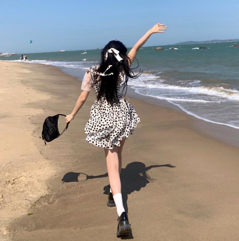 1.碎花长裙搭配小白鞋,非常的简单百搭,给人一种青春飞扬的感觉,同时也非常适合走路,对于比较高挑的朋友搭配效果很好。
