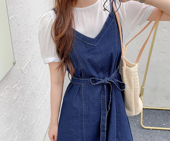 背带牛仔裙配什么上衣好看图片 打造满满的纯真少女感