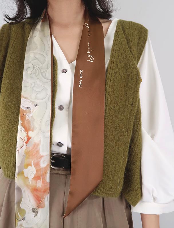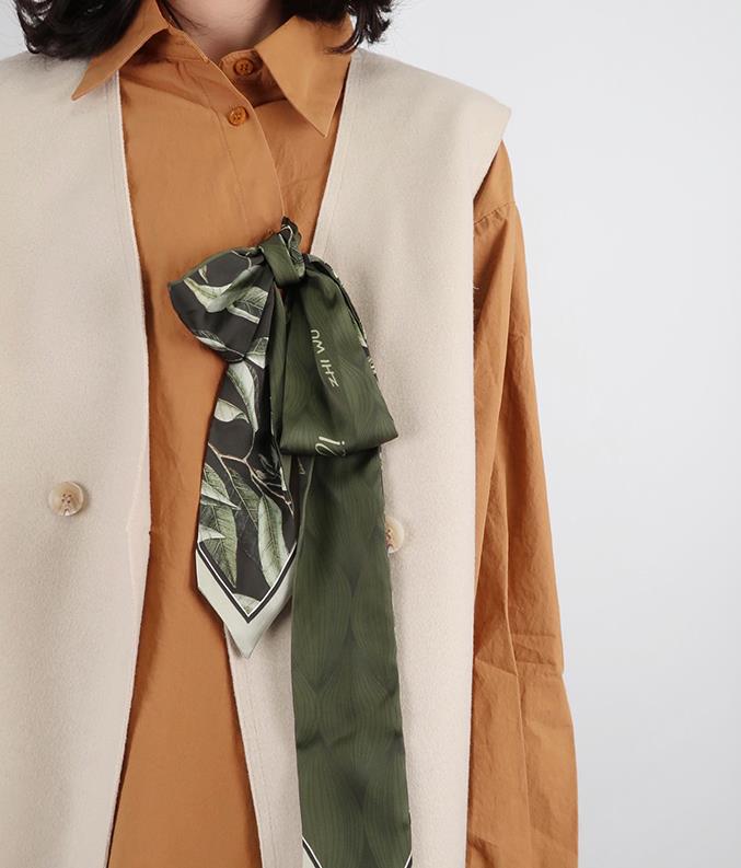 这种系发会因为丝巾的搭配让整个穿搭变得非常有趣,而且还会显得脖子很细,从视觉上来说整个人瘦了许多。对于丝巾爱好者来说可以利用丝巾凹造型,简单的细窄丝巾可以穿出强大的气场。