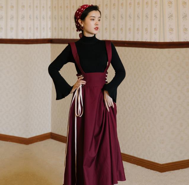 酒红色背带裙要怎么搭配(红色背带裙搭配) 99xcs.com