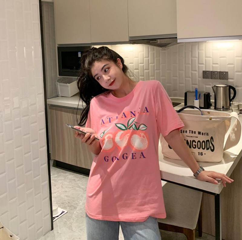 牛仔裤是我们日常穿搭中必不可少的裤子,版型有很多,都很时尚,牛仔裤搭配粉色短袖,休闲又甜美。