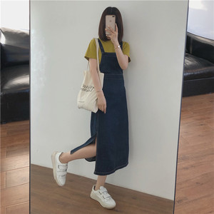 韩版牛仔中长款背带裙,减龄的背带款式,带给你显嫩的效果~而下摆的开叉设计使裙子穿着行动更自如。