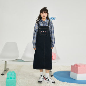 韩版牛仔中长款背带裙,减龄的背带款式,带给你显嫩的效果~而下摆的开叉设计使裙子穿着行动更自如。