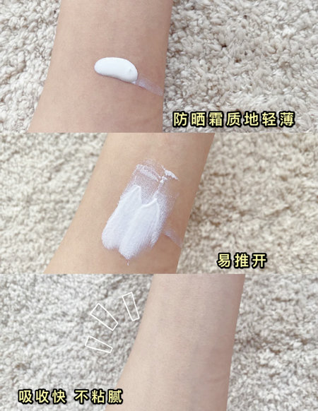 体验感还不错,质地是比较浓稠的那种,但是肤感很清爽,一点也不黏腻。少量多次点拍更容易推开噢~纯物理防晒,很温和也很安全。