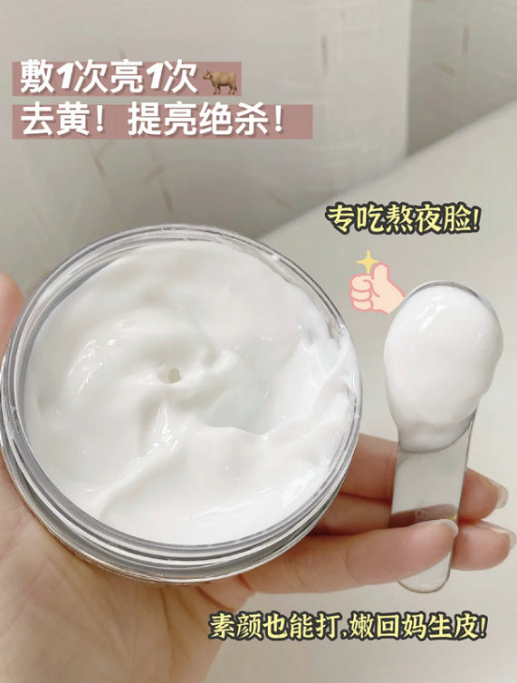 去黄提亮肤色选它就对了,酸奶质地上脸很舒服,睡前我会厚厚的敷一层10-15分钟就可以,面膜吸收完了,就是透明的状态,着急出门我就薄涂,救急清水洗过脸后,你自己都会觉得震惊!
