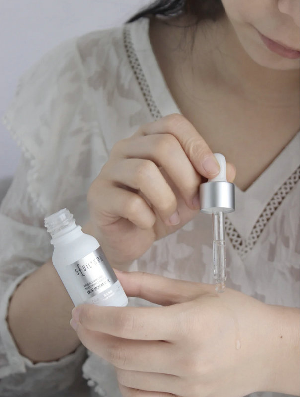 这款苏伊儿焕彩精华液的使用方法分为两种。你可以单独使用,在早晚洁面爽肤之后,取1-2滴滴在手背上,再用指腹沾取涂抹在脸上。它的质地不会很黏腻,非常好推开,涂在脸上之后马上就吸收了,清清凉凉非常的舒服。也可以将它搭配使用,在我们的乳霜或者面膜中滴入1至2滴,搭配在一起,效果绝对出乎意料的好~