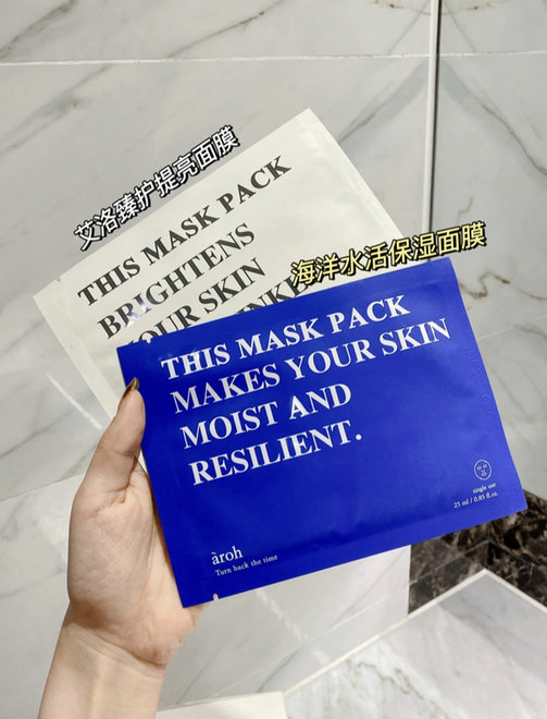 韩国女生都爱用的小众面膜,Aroh=“时光倒流”把拉丁语中意味着“时间”的hora倒写之后就是"阿罗"lns风设计,简约好看。
