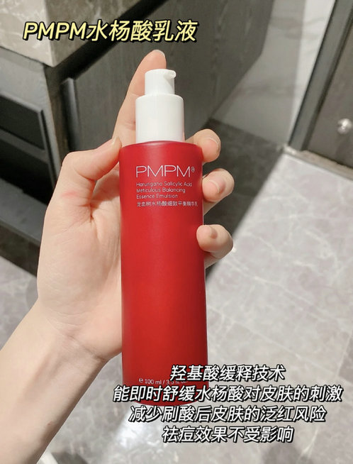 PMPM的水杨酸水乳是比较温和型的主打龙血树精粹+5%的缓释水杨酸,里面添加的龙血树精粹,可以很好的修护皮肤,缓释水杨酸也可以对皮肤的毛孔进行清洁,很温和的抚平了痘痘和闭囗。