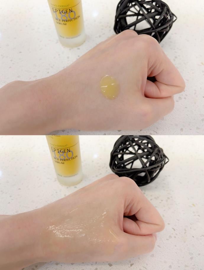 滴管的设计,使用方便,干净卫生,黄色的精华状质地,刚上脸会觉得有一丝丝粘腻,但是延展性很棒,仔细按摩吸收之后,就是很水润的肤感啦~延展性也很好,凝露的质地,吸收很快,不会有粘腻感,而且可以涂抹在颈纹上,比很多爆火的颈霜都有效果,不过一定要坚持涂,肌肤也在慢慢的吸收,淡化细纹,缩小毛孔都是要坚持使用下来效果才明显哦。