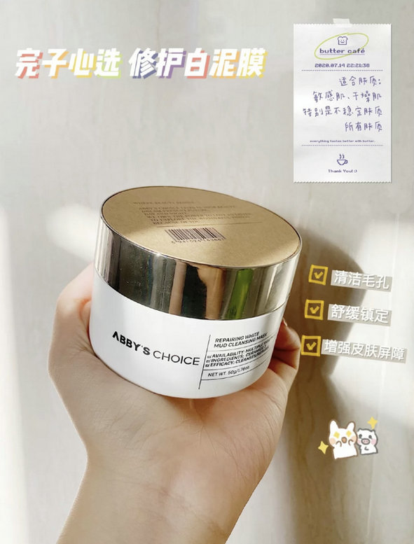 修护白泥膜:这个全肤质包括敏感皮都能用,含有神经酰胺,修护屏障是一把好手,尤其现在正是换季的时候,我脸时不时泛红、粗糙,一周敷一次白泥膜好的多。