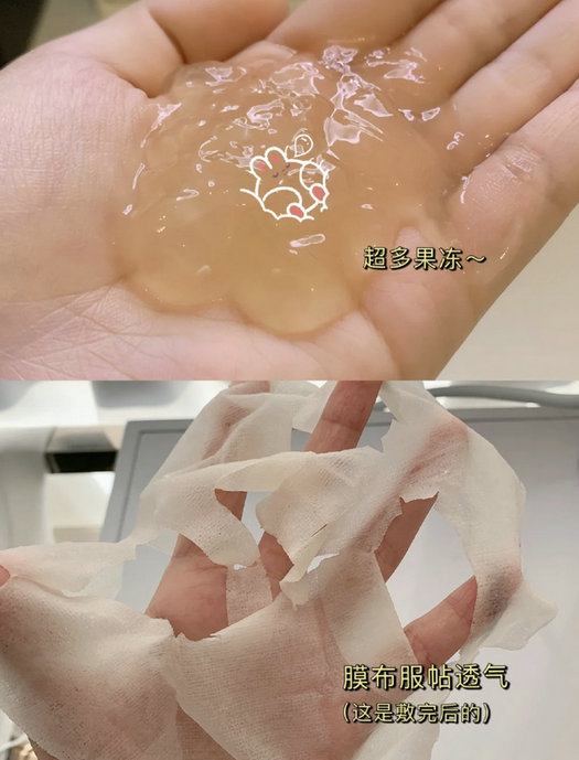 依旧是33g的果冻,一定要记得先敷一层果冻精华到脸上,再使用面膜纸,再敷上剩下的精华。不然真的是会用了个寂寞。用起来很舒服,味道淡淡的,果冻状精华不会拔干,吸收很好。