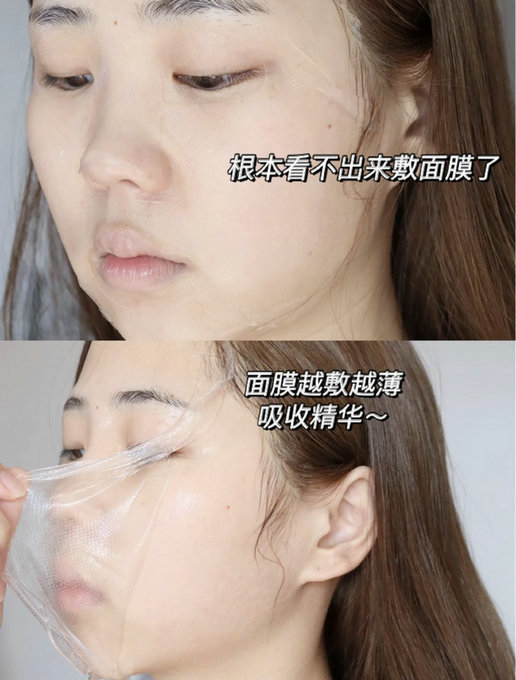 之前用活蛋白水晶面膜消肿去红效果非常好,就是有点小贵,这款同品牌日常修复第一次用,比活蛋白水晶面膜薄很多很多,但是营养液比较多,比较水润,是两层稍厚的无纺布中间一层水晶面膜,比敷各种无纺布面膜舒服,就是得躺着,不然容易掉。