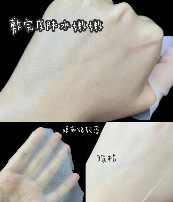 面膜轻薄透气,清爽柔滑精华。敷脸淡淡的清香很好闻,非常容易吸收,成分安全。我是混合皮觉得挺好用,我用啥都不过敏。