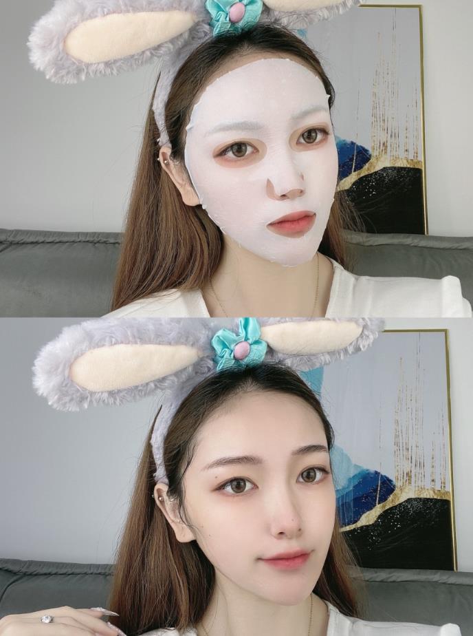 它精华挺多的,每次我都把脖子和手也护理一下,膜布好似奶皮一样敲细纤维的高端膜布,轻薄还服帖上脸肤感太棒了,刚用完皮肤就舒缓好多,坚持用几天发现皮肤不红了,水润了痘也少了,真是宝藏面膜呢~