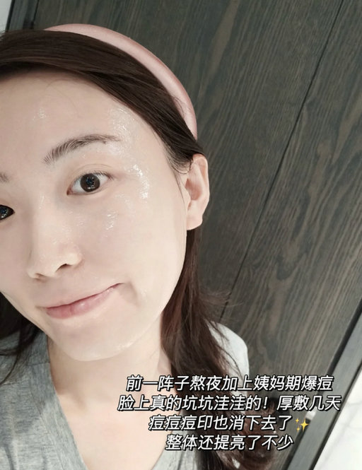 没想到太好用了,我就晚上厚敷一层在脸上早上起来皮肤就被修护了,痘瘪了,脸不烂了,新生痘印都淡了这也忒牛了,白嫩透亮的,素颜出镜都完全没毛病。